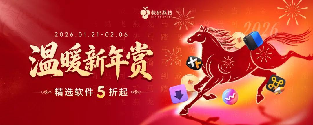 寒潮强势来袭、农历马年也即将到来,这个冬天数码荔枝开启温暖新年赏,带来多款软件优惠,低至 5 折