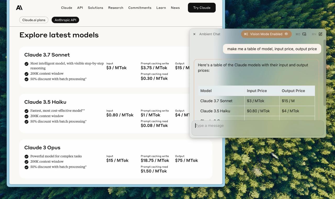 Hamel Husain(Answer.AI)称赞说:「Chorus 真的很酷。这是一个非常精致的应用,让你并排使用所有模型,’环境聊天’功能允许模型看到你电脑上正在做的一切。它就是好用。」