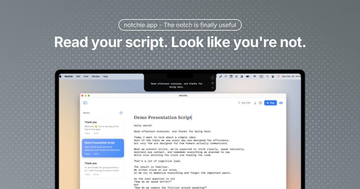 🗣 Notchie:将 Mac「刘海」变成你的提词器