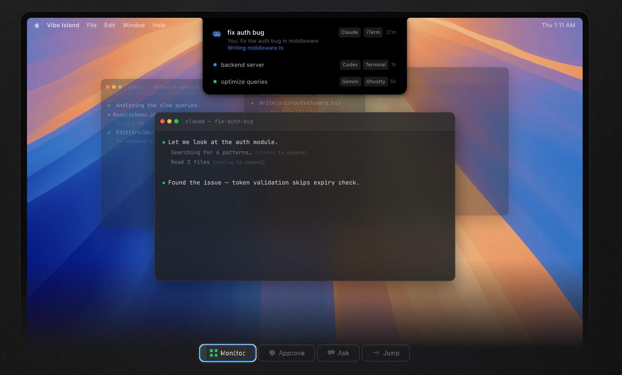 🏝️Vibe Island: 把 MacBook 刘海变成 AI 编程代理的实时控制面板